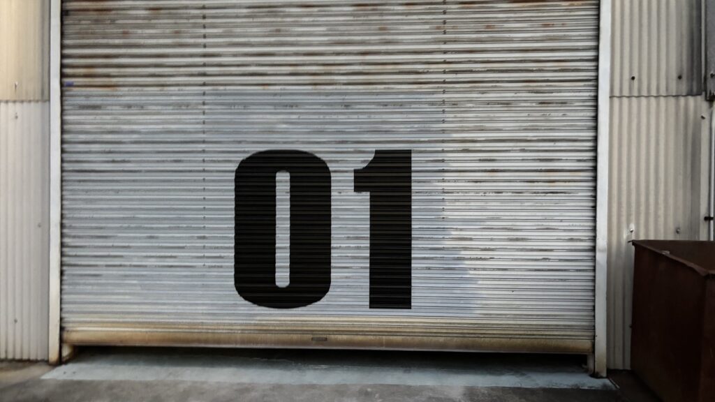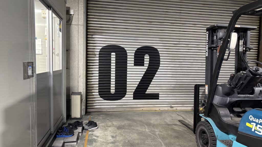 追加でシャッターへのシート貼りも行わせて頂き、番号を入れたことで必要な物がどちらの倉庫に入っているか番号で管理ができるようになりました。