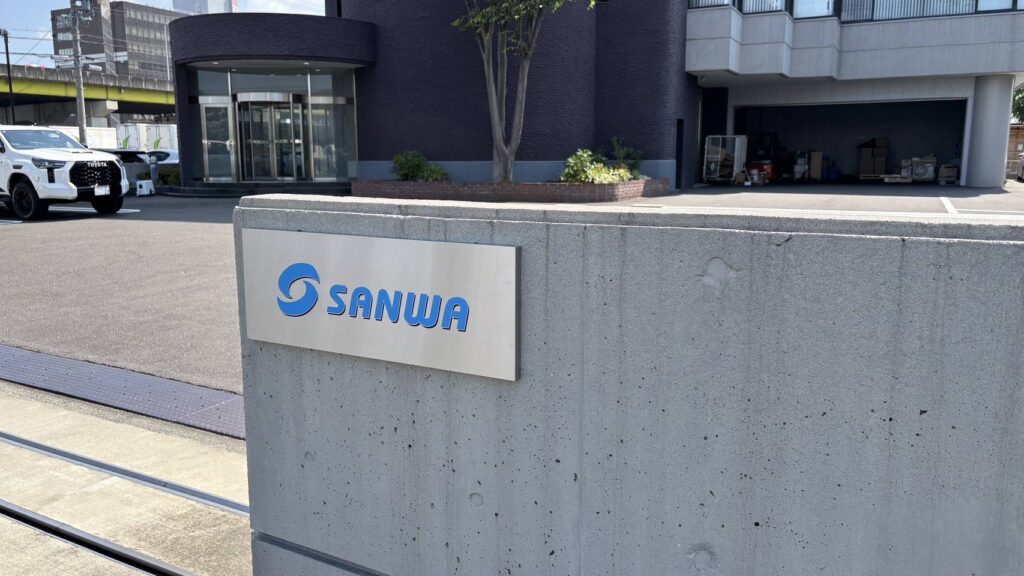 敷地入口の塀にはステンレスを箱曲げしたものに企業様のロゴシートを貼って仕上げました。