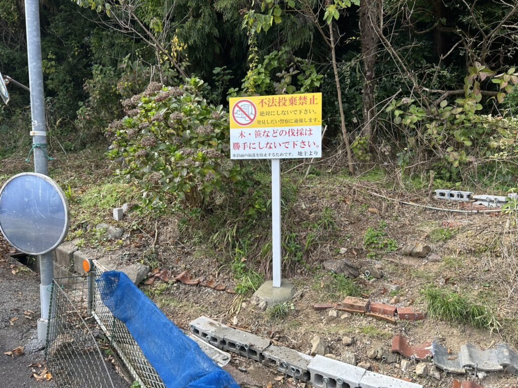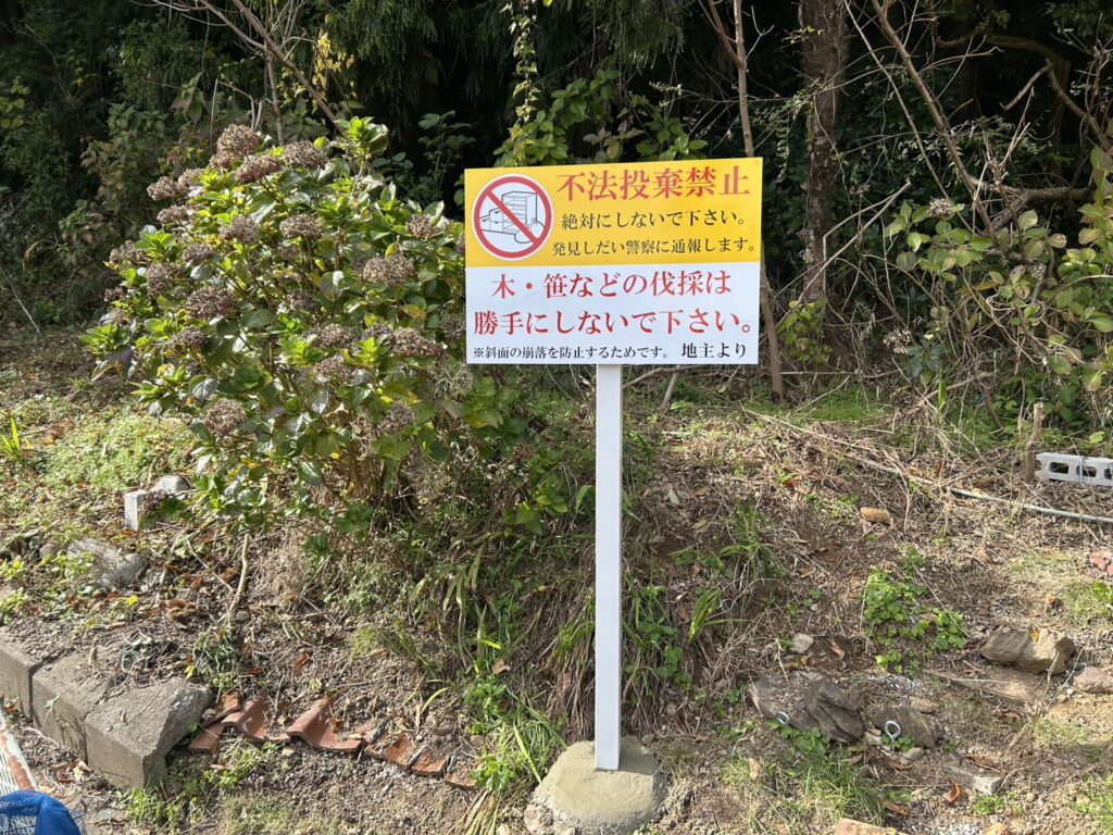 常に人がいる場所ではない事でゴミの不法投棄があったり木を勝手に伐採されるといった行為が起きているという事でご相談を頂き注意を促す看板を製作させて頂きました。