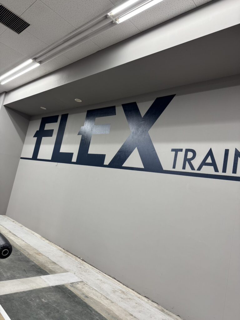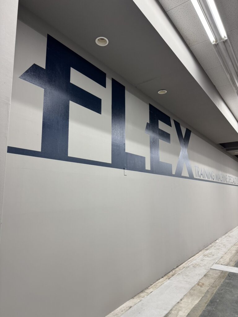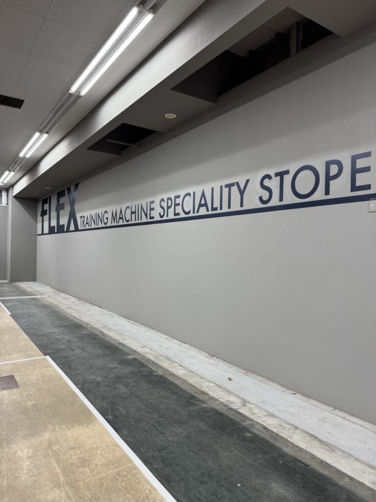 岐阜県揖斐郡池田町にて新たにオープンするトレーニングマシン販売会社様の室内壁に塗装にて文字入れを行いました!