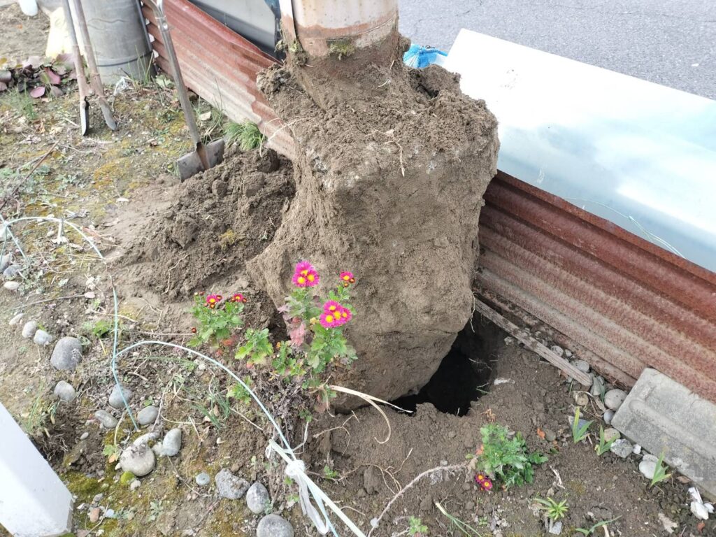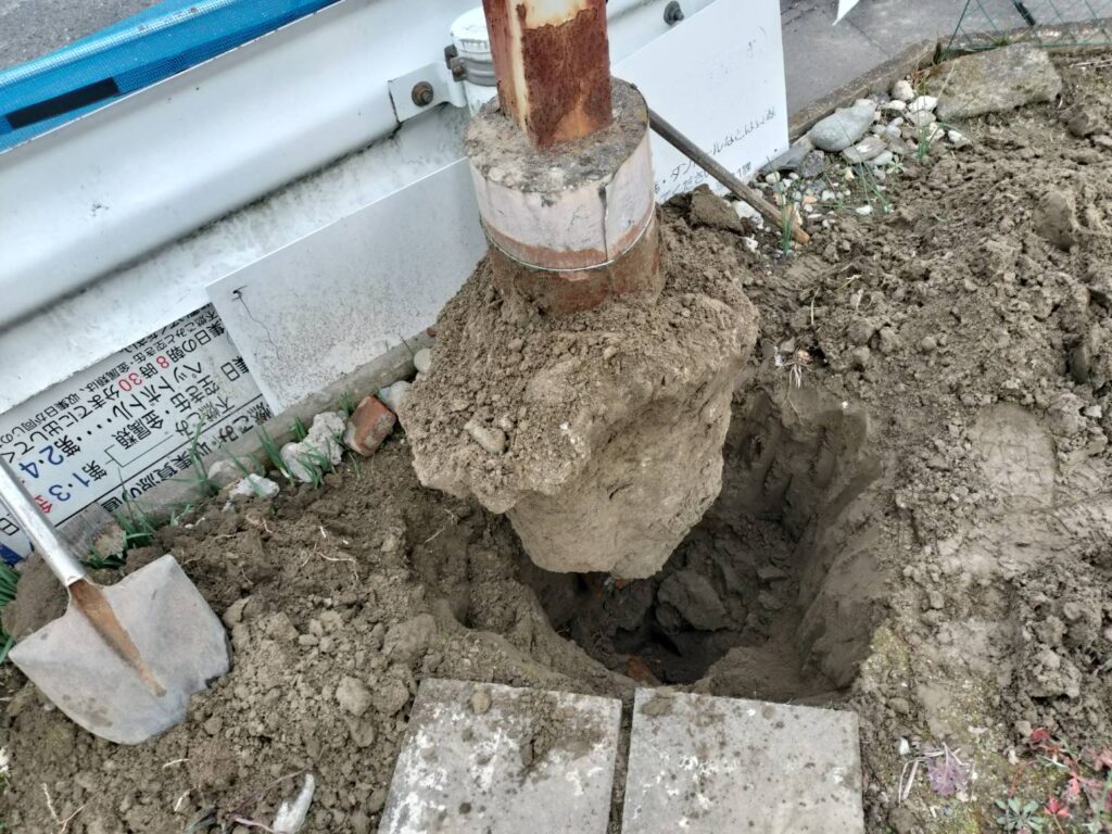 野立看板は基本的に地主様に土地をお借りして設置を行っている事から、撤去の際には今後の土地使用時にご迷惑とならないよう基礎ごと撤去をさせて頂いております。