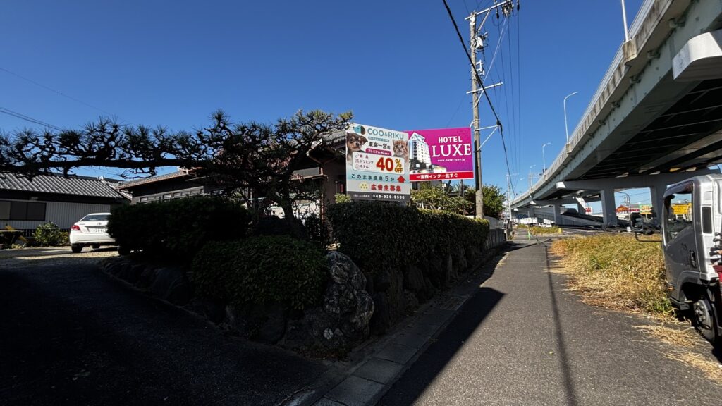 22号線沿いに面した場所となっており生垣を超える高さに調整して作成した看板は視認性がよく前の道路を通る方へしっかりとアピールができるようになっております。