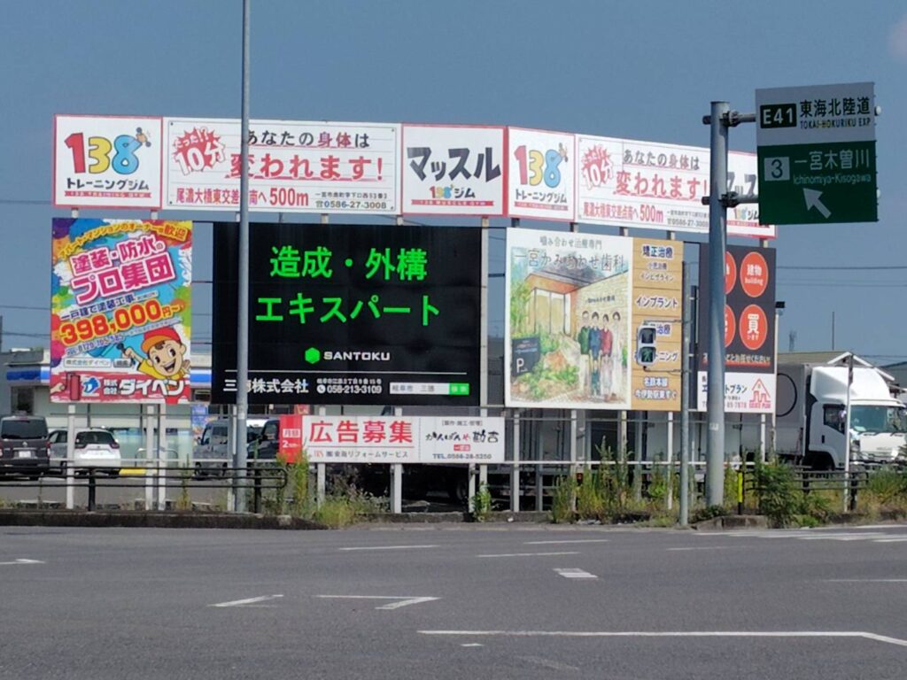 本物件は国道22号線沿いに面しており木曽川インターのすぐそばにある事から交通量も多く岐阜・愛知間を通る方や信号待ちの方へ抜群の広告効果がございます。