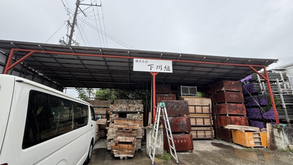 一か所は既設の丸パイプが建っておりましたのでこちらを利用してパネルにシートを貼った看板を取り付け、もう1台は資材置場の柱を利用して下地にアルミ枠を使用したパネル看板を設置させて頂きました。