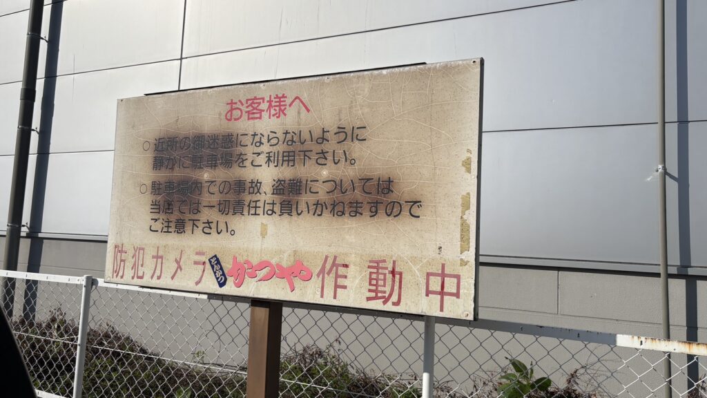 愛知県北名古屋市にて飲食店様の駐車場に設置されている免責看板の交換作業に伺いました!