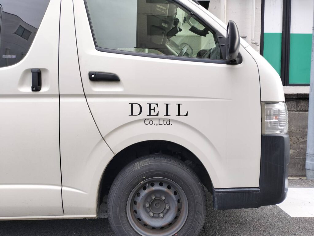 また、社用車の左右にも黒色で作成した屋号のステッカーを施工しております。
